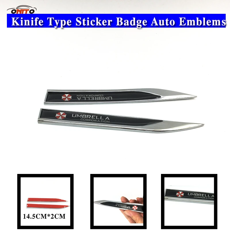 Images of Auto accessories 2pcs/set Umbrella Resident Evil logo Car metal side Sticker badge Auto body decoration emblem Knife Type Label